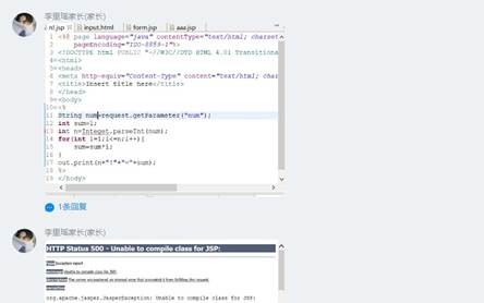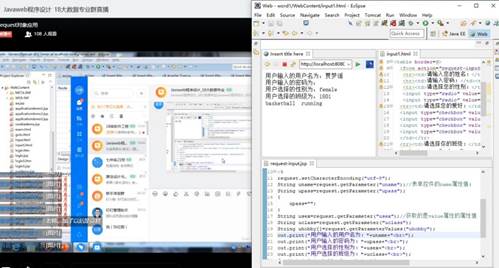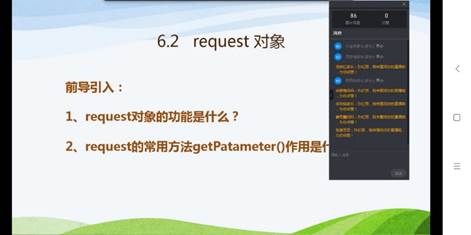 公开课上孙红丽老师首先回顾了上节课所学内容——request对象基本功能及常用方法getParameter()的相关知识,然后通过一个实例应用:表单数据的获取,引入本节课的内容: