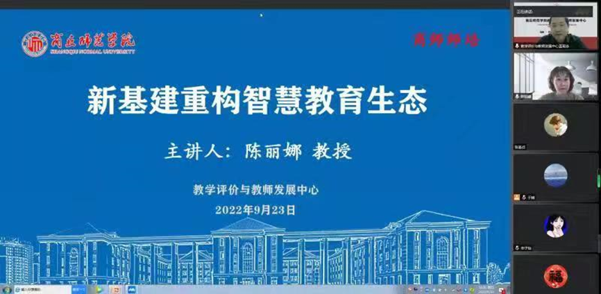 9月23日下午,由教学评价与教师发展中心主办、太阳成集团tyc234cc承办的“笃信论坛”通过腾讯会议线上直播的形式举行。太阳成集团tyc234cc陈丽娜教授作了题为《新基建重构智慧教育生态》的主题研讨,近200位来自省内外的教师参与了此次活动。太阳成集团tyc234cc副经理刘佳主持此次论坛。
