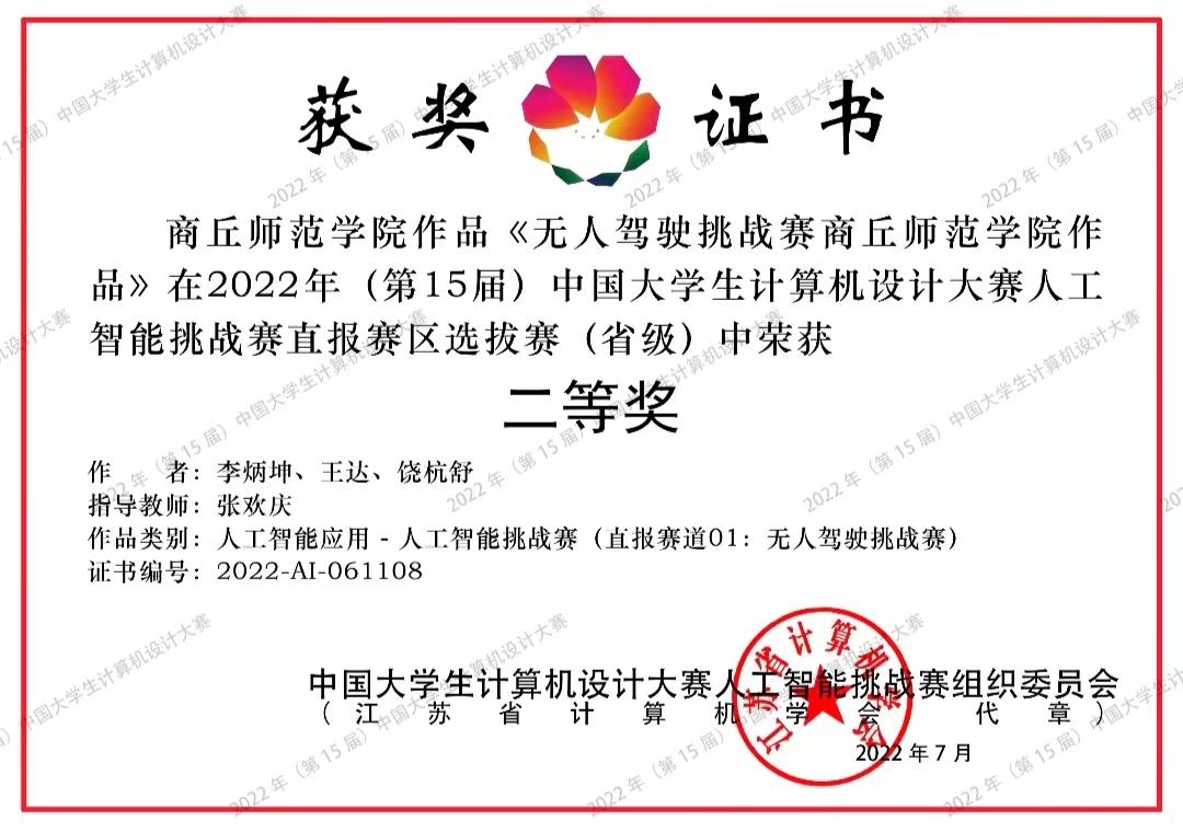 2022年8月,由中国人工智能学会举办的第二十四届中国机器人及人工智能大赛落下帷幕,太阳成集团tyc234cc许青青等三名员工通过层层选拔,在此次角逐中荣获智能驾驶赛国赛二等奖。