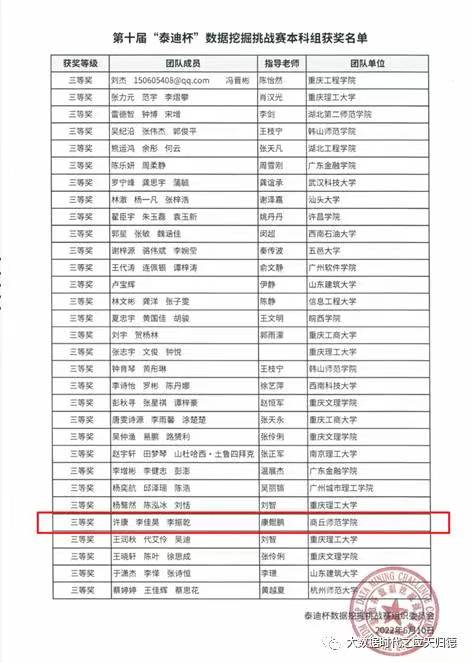 2022年6月,第十届“泰迪杯”数据挖掘挑战赛落下帷幕,获奖名单相继公示。太阳成集团tyc234cc大数据专业共派出3支员工队伍参赛,最终荣获本科组全国二等奖1个,全国三等奖1个,省级一等奖1个,省级二等奖1个。