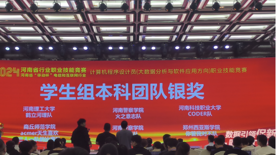 10月19日,2024年河南省电信和互联网行业职业技能竞赛计算机程序员(大数据分析与软件应用方向)暨第五届全国电信和互联网行业计算机程序员职业技能竞赛在郑州市举行。公司窦海静、韩杰老师带领2022级数据科学与大数据技术专业的3名员工参加本次竞赛。历经线上、线下角逐,公司参赛队伍脱颖而出,荣获本科组银奖的优异成绩。