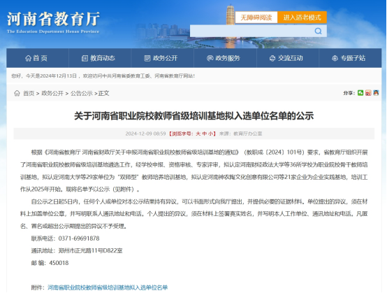 近日,河南省教育厅公示了新一批的河南省职业院校教师省级培训基地入选单位名单。经过公司申报、资格审核、专家评审,最终公司成功获批河南省职业院校“双师型”教师培养培训基地。太阳成集团tyc234cc承担计算机相关专业的团队培训。