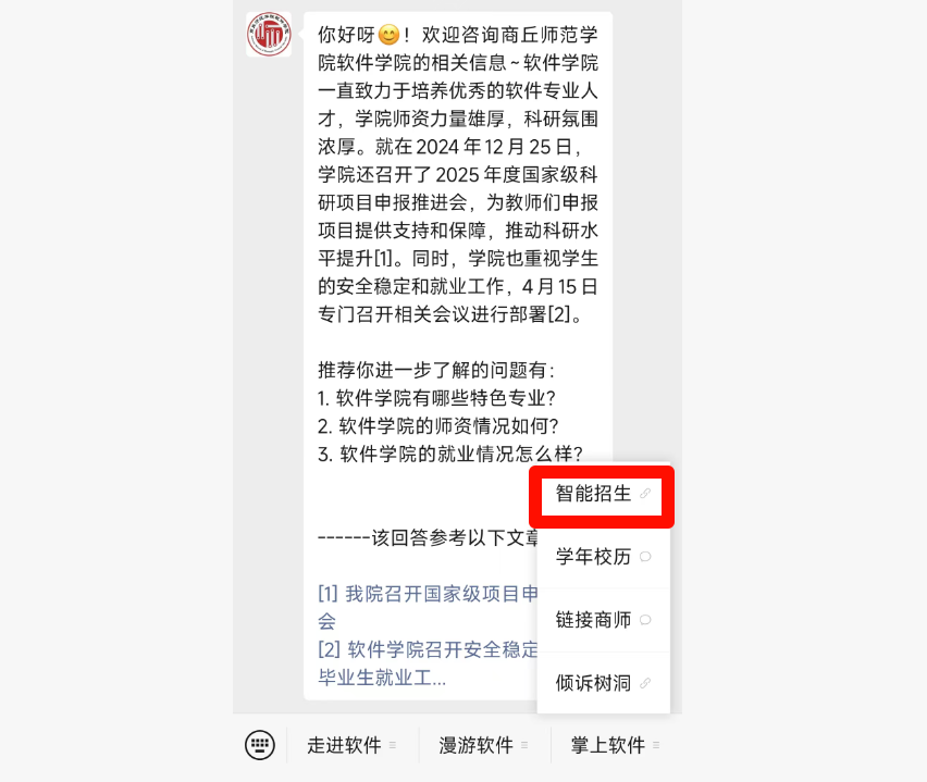 本专业为河南省一流专业,在教学资源、团队力量、实验设备等方面享有优势。专业教学紧密结合智能系统设计与开发的前沿技术,课程设置紧跟行业发展趋势,及时引入人工智能、大数据、物联网等新兴技术内容,使员工能够学习到最新的知识和技能,更好地适应未来就业市场的需求。构建了较为完善的实践教学体系,让员工在实际项目中锻炼动手能力和解决实际问题的能力,提高综合竞争力。强调计算机科学与技术与其他学科的交叉融合,激发员工的创新思维和创新能力,为智能系统设计与开发领域培养具有创新精神的复合型人才。