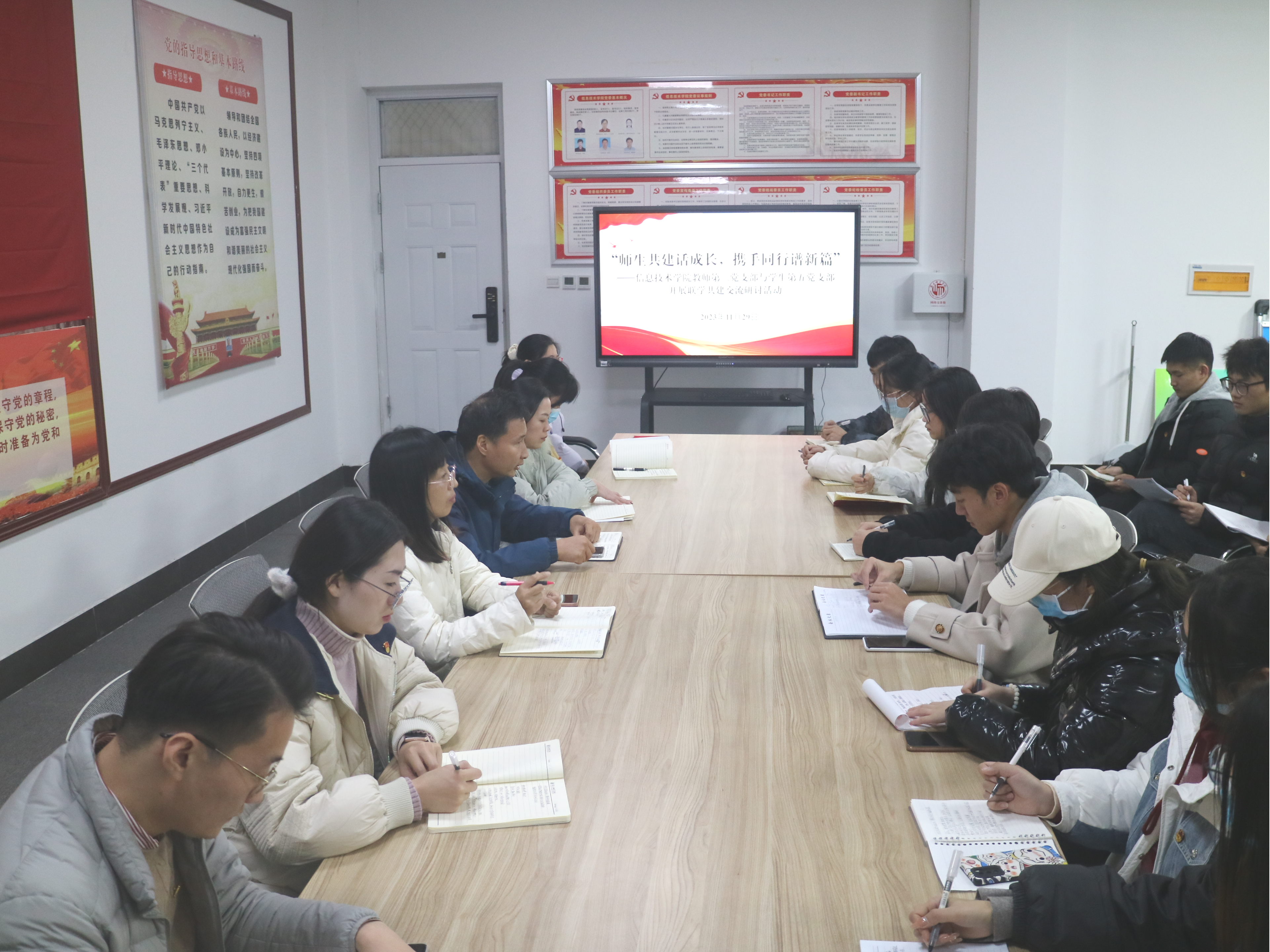 11月29日,太阳成集团tyc234cc教师第二党支部与员工第五党支部于三商楼114会议室,开展以“师生共建话成长,携手同行谱新篇”为主题的联学共建交流研讨活动。经理王春霞、教师第二党支部书记康鲲鹏、员工第五党支部书记吴楚出席本次活动,活动由康鲲鹏主持,全体教师党员、员工党员,以及部分入党积极分子共计26人参与本次活动。