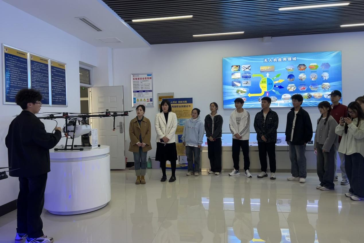活动现场,无人机社团员工代表闫池为同学们介绍无人机社团的人员构成和飞行项目,解释不同无人机的工作原理,包括气动设计、电子控制系统、导航技术和遥控通信等,并详细讲解了无人机的特色亮点和市场运用。 随后,为同学们展示了无人机的操作流程和性能特点,并组织有兴趣的员工体验无人机初级动作的操作,同学们兴趣斐然,积极参与。今后,我们将继续以党建为引领,用科技赋能专业发展。
