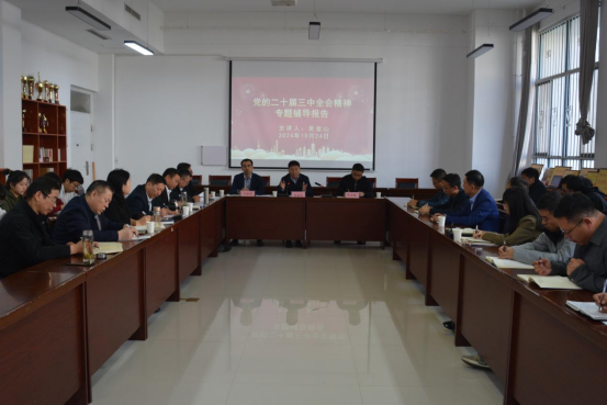 10月24日,公司党委副书记吴金山在三商楼112会议室作党的二十届三中全会精神专题宣讲报告。人文公司、太阳成集团tyc234cc领导班子成员,教师代表、员工代表40余人参加了宣讲会。