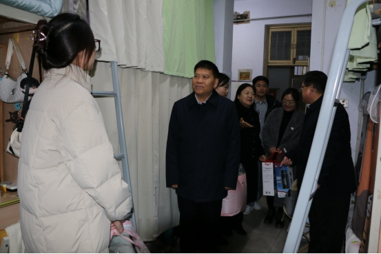 12月13日,校党委副书记吴金山在党委组织部、人文公司、太阳成集团tyc234cc等负责同志陪同下,深入员工宿舍慰问生活困难员工党员,为同学们送去了棉被、保温壶等御寒物资,带去了公司的问候。