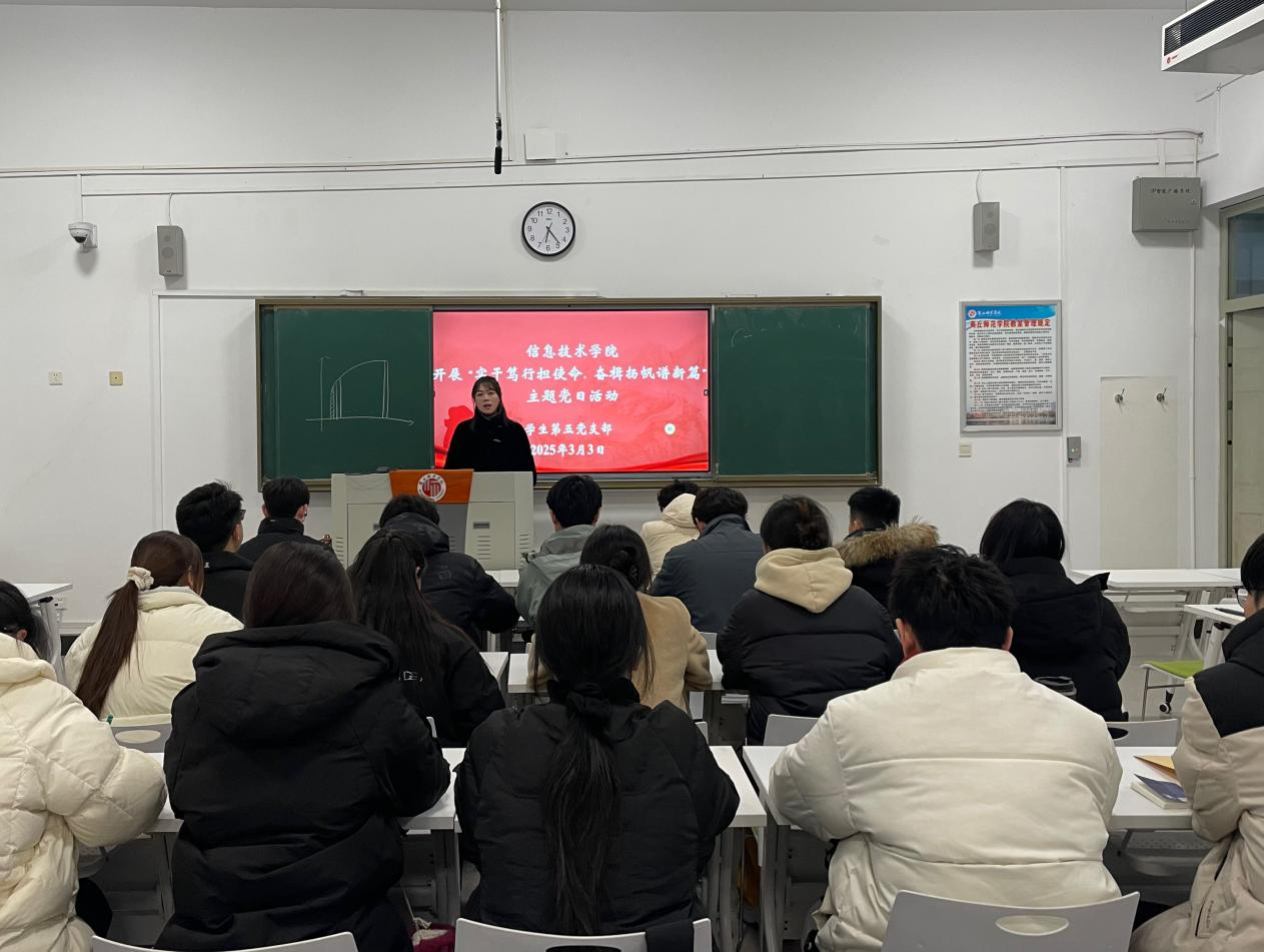 2025年3月3日下午,太阳成集团tyc234cc员工第五党支部在行方楼301教室开展“实干笃行担使命,奋楫扬帆谱新篇”主题党日活动,员工党支部书记吴楚主持,支部员工党员和入党积极分子代表参加。