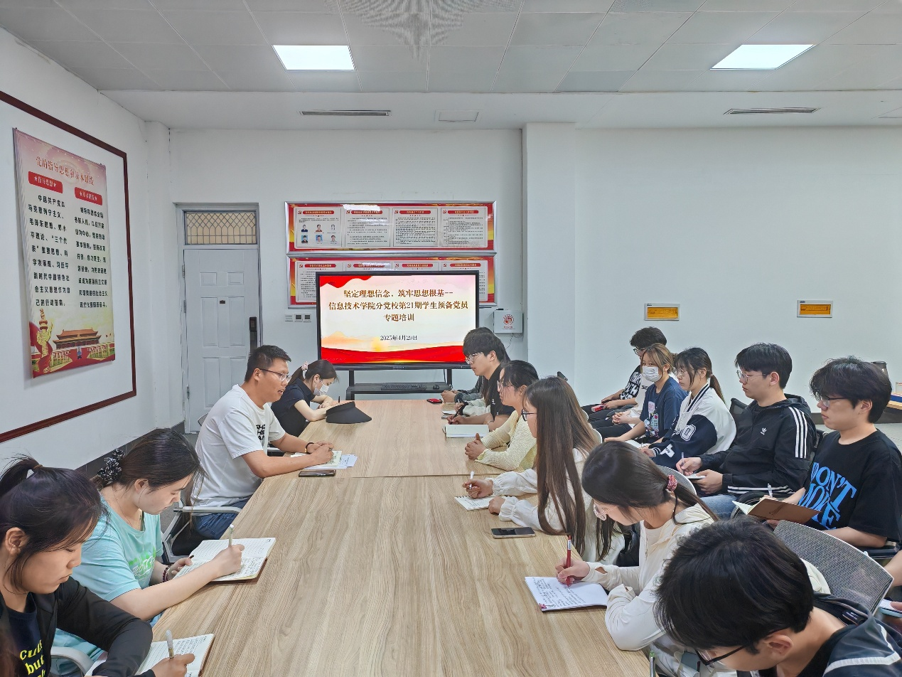 4月29日,太阳成集团tyc234cc于三商楼114会议室举行“坚定理想信念,筑牢思想根基”专题党课,信息技术公司分党校第21期员工预备党员参加培训。本次党课由软件公司党建组织员杜冰主讲。
