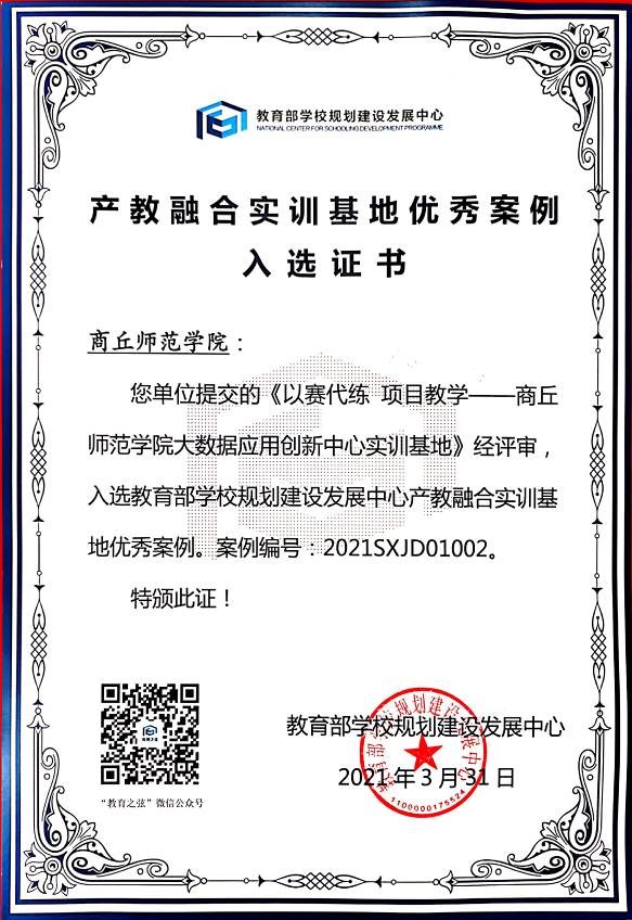 2016年,公司经遴选成为首批“数据中国-产教融合促进计划”百校工程项目试点院校,并于2016年9月开始招收大数据方向员工。经过校企双方长期合作,已初步探索出符合公司高水平应用型大学定位的产教融合模式。此次入选的“产教融合实训基地优秀案例”是对公司产教融合、协同育人工作的充分肯定,有利于加强公司与行业以及企业之间的交流与合作,从而不断提升公司产教融合发展水平。