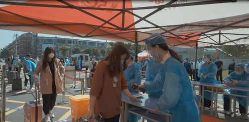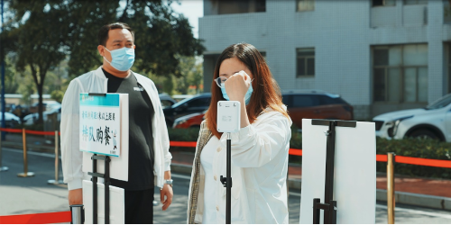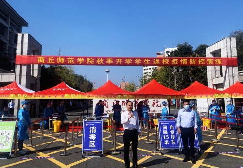 演练总指挥张箭宣布演练开始。演练师生在公司大门、员工宿舍、员工餐厅模拟了返校当天入校、住宿流程。在员工入校的卡点现场,演练了行李消杀、检测体温、扫码检查等入校流程。在员工宿舍,进行了间隔进入、体温检测、验证身份等流程演练。其中,特别针对体温异常、健康码异常、无核酸检测证明、未接种新冠病毒疫苗、心理问题咨询等返校报到异常情况进行演练,进一步提高员工返校疫情防控的应急处置能力。