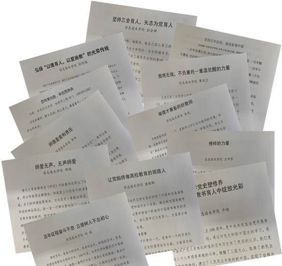 征文活动开展后师生们积极响应,热情参与,共收到征文稿42份。围绕着弘扬高尚师德,忠诚党和人民的教育事业,坚守为党育人、为国育才的使命担当,认真履行教师神圣职责等主题抒发了自己对教育事业的热爱与追求,努力做“四有”好老师的坚定信念。同学们也表达了坚定理想信念、矢志报效国家的决心与追求。