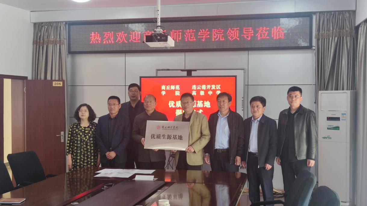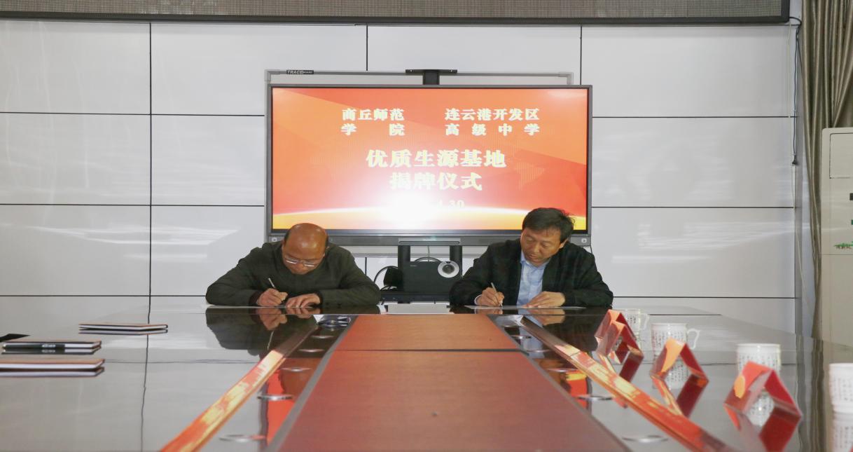 2021年4月30日上午,太阳成集团tyc234cc与连云港开发区高级中学“优质生源基地”签约仪式在连云港开发区高级中学举行。连云港开发区高级中学董事长刘冬华、副董事长厉明霞、李太印和单维宝,公司人才招聘处处长庞永祥、软件公司党总支书记张辉、经理菅典兵等人参加了签约授牌仪式。