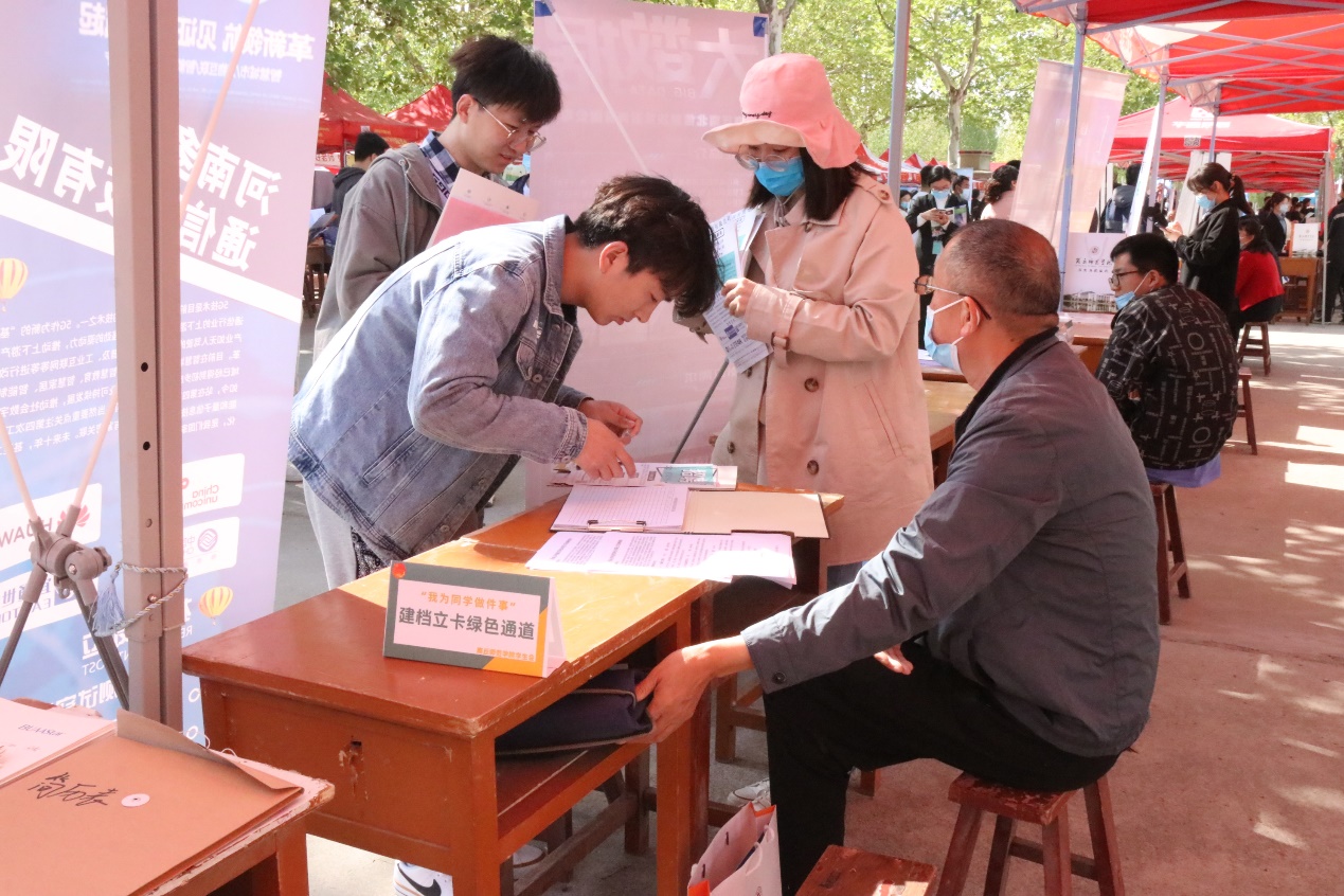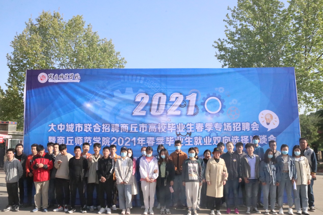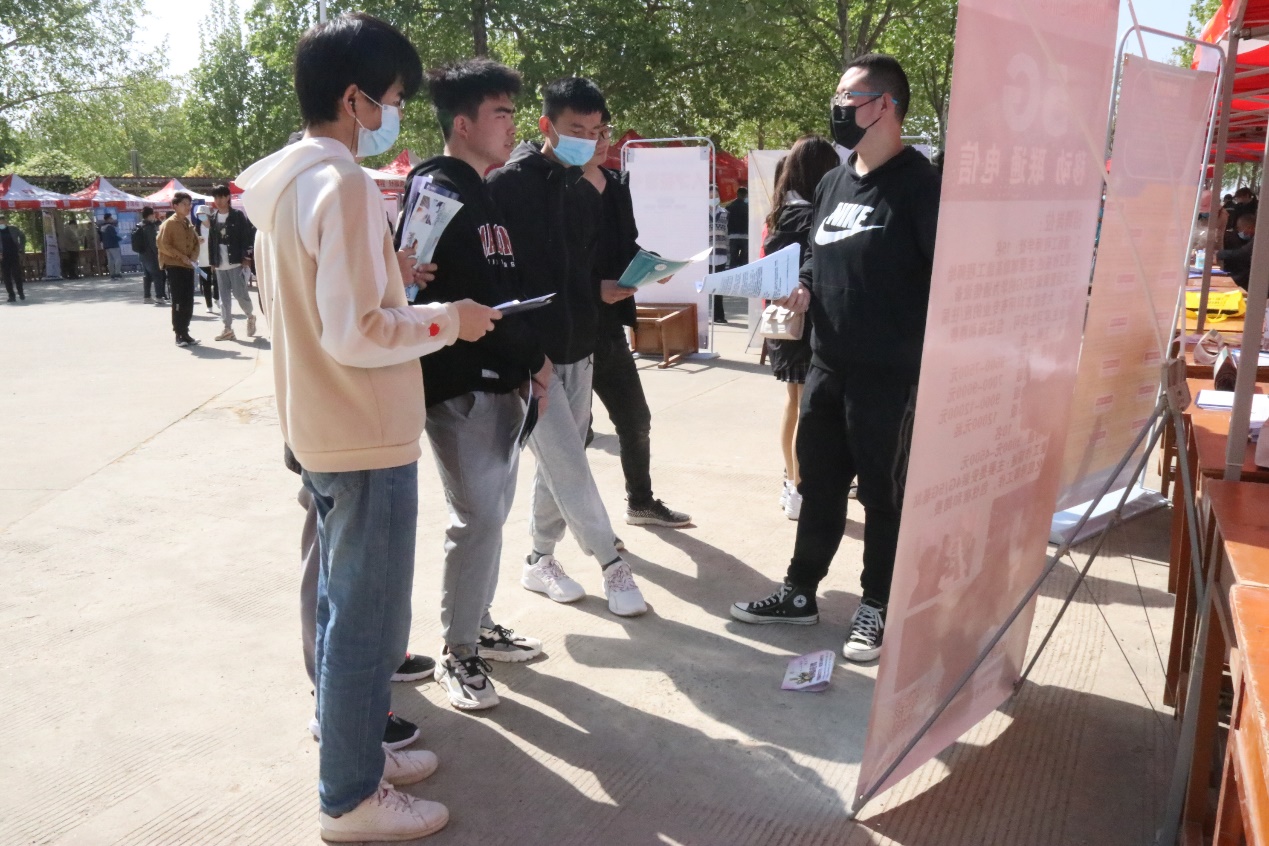 4月17日,大中城市联合招聘商丘市高校毕业生春季专场招聘会暨太阳成集团tyc234cc2021年春季毕业生就业双向选择洽谈会于梁园校区行方楼前举行。太阳成集团tyc234cc张瑞、卢晗老师带领员工参加此次双选会。