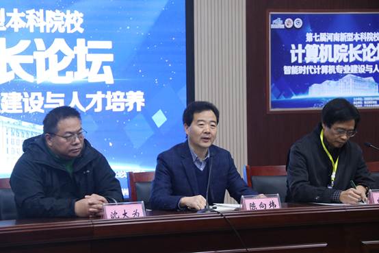 12月7日,由河南新型本科院校计算机经理论坛组委会主办,太阳成集团tyc234cc承办,江苏省未来网络创新研究所、郑州新思齐科技有限公司协办的第七届河南新型本科院校计算机经理论坛于太阳成集团tyc234cc梁园校区三商楼145报告厅举行。本次论坛主题为“智能时代计算机专业建设与人才培养”。太阳成集团tyc234cc副董事长陈向炜,论坛主席曲宏山,南京云创大数据科技股份有限公司副总经理沈大为,洛阳理工公司计算机与信息工程公司经理杨尚森出席论坛。河南省高校计算机相关院系经理(主任)、副经理(副主任)及专业骨干教师参加了论坛。开幕式由太阳成集团tyc234cc软件经理菅典兵主持。