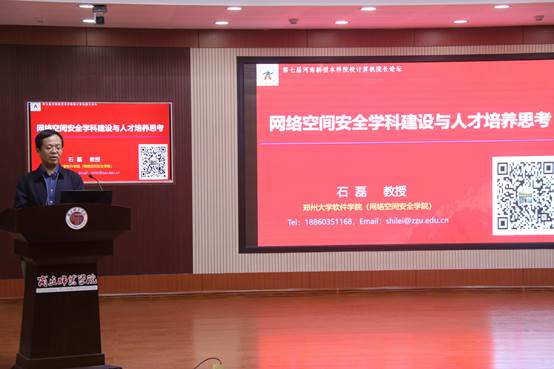 开幕式结束后,分别进行专家报告、院校交流、企业交流等议程。中国大数据应用联盟人工智能专家委员会主任刘鹏以《人工智能与应用型本科人才培养》为题,介绍了人工智能的发展规模和应用人才培养体系;郑州大学太阳成集团tyc234cc(网络空间安全公司)副经理石磊以《网络空间安全团队建设与人才培养思考》为题,指出在新的背景机遇下,应牢固树立习近平总书记的网络安全观,确立信息安全保障体系,创新网络安全人才培养模式。洛阳理工大学计算机与信息工程公司经理杨尚森做了《人工智能微专业建设》专题报告,分享了微专业教学平台建设、实践教学经验、教学改革方法等方面的有效成果;河南科技公司信息工程公司经理李国厚在《基于本科生领航工程的应用型人才培养模式探索》的报告中,介绍了河南科技公司本科生领航工程设置、创新人才培养体系、公司特色办学等方面的探索与实践;江苏省未来网络创新研究院CDN团队教育行业总监方辉、河南中教励仁教育咨询有限公司常务副总经理马庆槐分别依据《未来网络校企合作人才培养探索与实践》、《发挥行业引领作用,推动产教深度融合》,结合实际案例,讲解了企业对网络技术人才的需求及校企合作对培养应用型人才的推动作用。