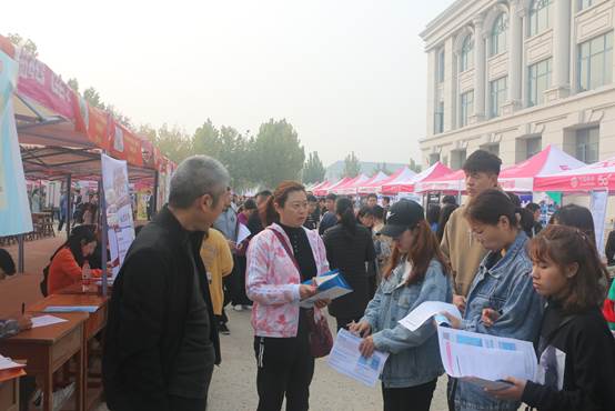 11月3日,太阳成集团tyc234cc2019年秋季毕业生就业双向选择洽谈会于梁园校区行方楼前举行。太阳成集团tyc234cc辅导员郭竹梅、戴艳带领各年级员工代表参加此次双选会。