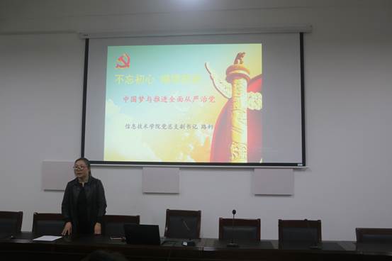 本次党课以“不忘初心 继续前进”为主题。路书记从筑就民族复兴的“中国梦”、积极培育和践行社会主义核心价值观、认真贯彻“四个全面”的战略布局、坚定不移推进全面从严治党等方面,阐释了中国梦与推进全面全面从严治党的重点要义。她强调,全体入党积极分子要加强党课学习,融会贯通,深化对“不忘初心 继续前进”的认识和理解,常怀忧党之心、为党之责、强党之志,坚定共产主义远大理想,牢记党的初心使命,为实现中华民族伟大复兴的中国梦继续前进!
