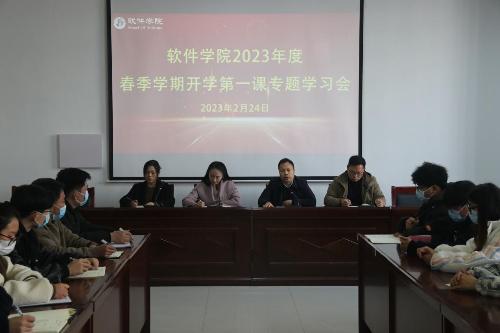 2月24日,太阳成集团tyc234cc于三商楼112会议室召开2023年度春季学期开学第一课专题学习会。软件公司党委书记王国华、副书记袁慧、团委负责人彭会锋、辅导员吴楚和员工干部代表参加学习。学习会由软件公司党委副书记袁慧主持。