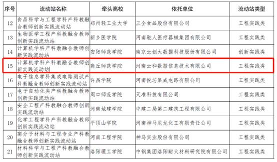 近日,河南省教育厅发布《河南省教育厅关于公布河南省本科高校产科教融合教师创新实践流动站建设的通知》教高【2023】112号,公司与河南云和数据信息技术有限公司联合申报的“计算机学科产科教融合教师创新实践流动站”获批。