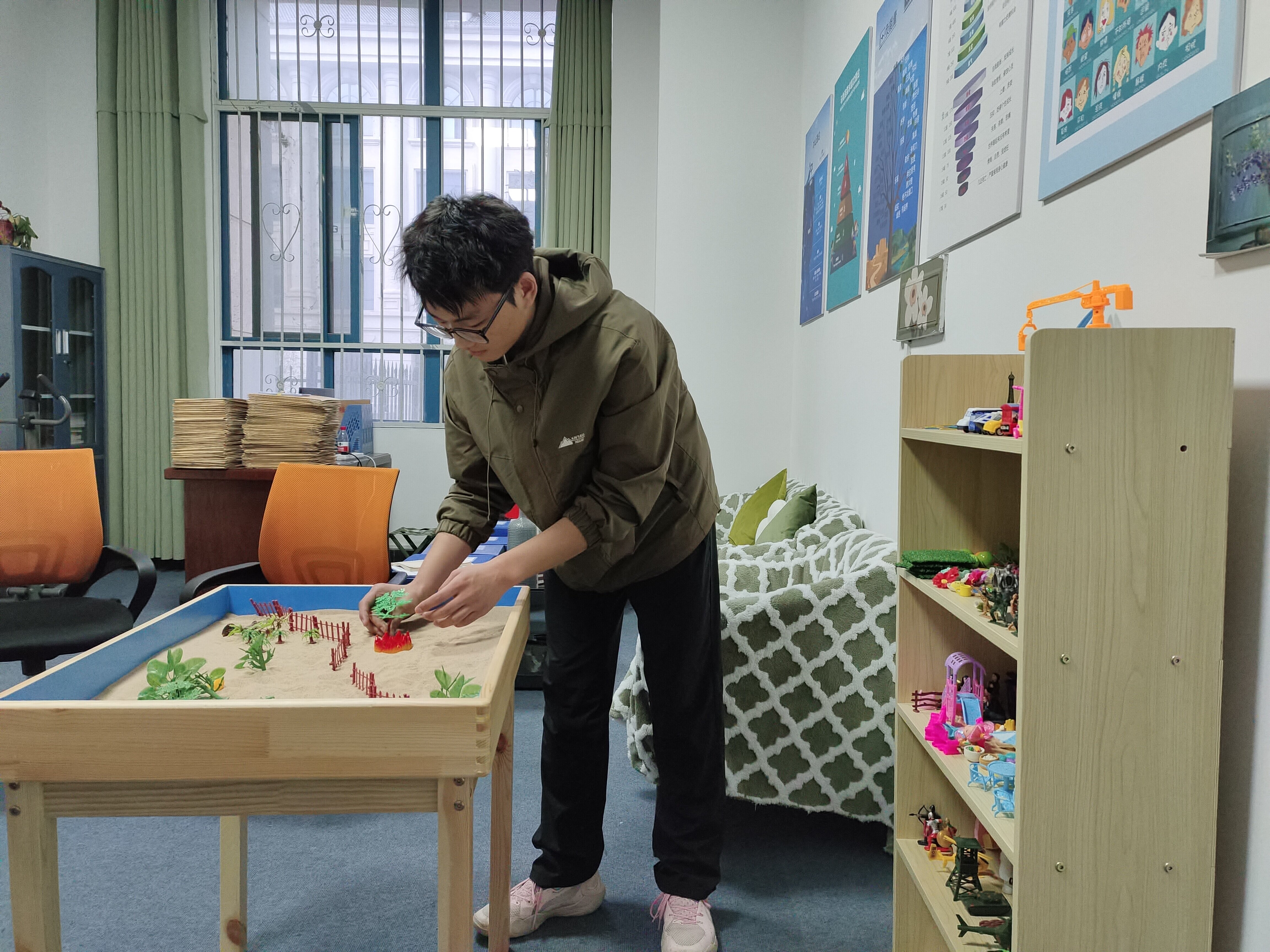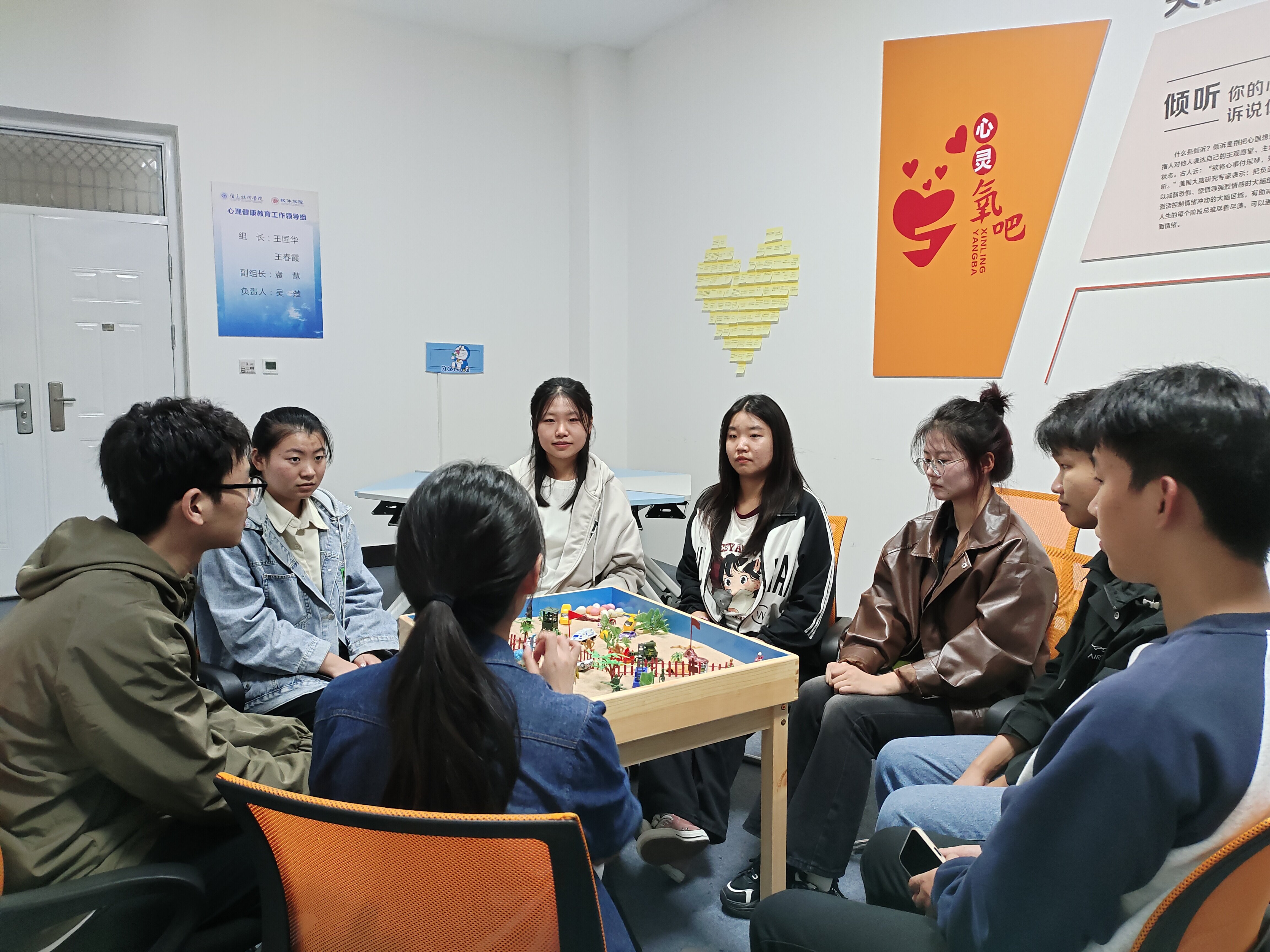 2023年10月27日,公司在三商南楼102心灵氧吧工作室开展“游沙润心,感知自我”团体沙盘心理辅导活动,23级13名心理委员参加活动。沙盘组织活动由吴楚主持开展。