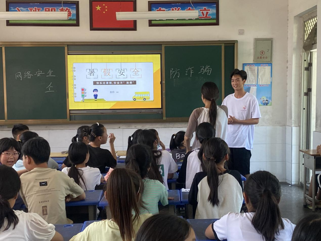 7月4日,宣讲小队的成员们用生动有趣的讲课方式让儿童们在欢快的课堂氛围中学到知识。并且在宣讲的过程中与儿童积极互动,用身边的真实案例对农村儿童尤其是留守儿童进行暑期安全和络安全教育,防止员工暑期出现人身安全、沉溺网络和电信诈骗等事故,筑牢安全防线。
