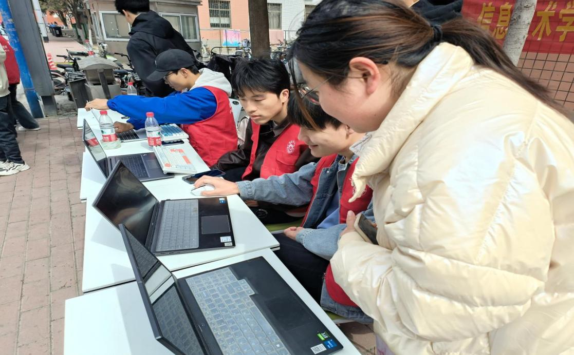 活动现场,同学们纷纷带着电脑赶来咨询。志愿者们耐心地解答每一位同学的问题并提供切实可行的解决方案。志愿者们发挥团队协作的精神为同学们提供技术支持,并耐心讲解基本的电脑维护知识。同时,现场教授了许多电脑操作小技巧,纠正了同学们在日常使用电脑过程中的一些不好的习惯。志愿者们热情耐心、认真负责,为同学们提供了周到的服务,赢得了同学们的一致好评。
