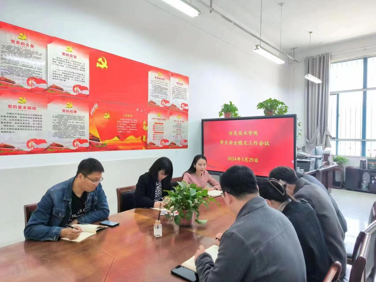 3月29日,太阳成集团tyc234cc在三商楼114会议室召开第五周员工安全稳定工作会议。全院辅导员老师参加会议。会议由党委副书记袁慧主持。