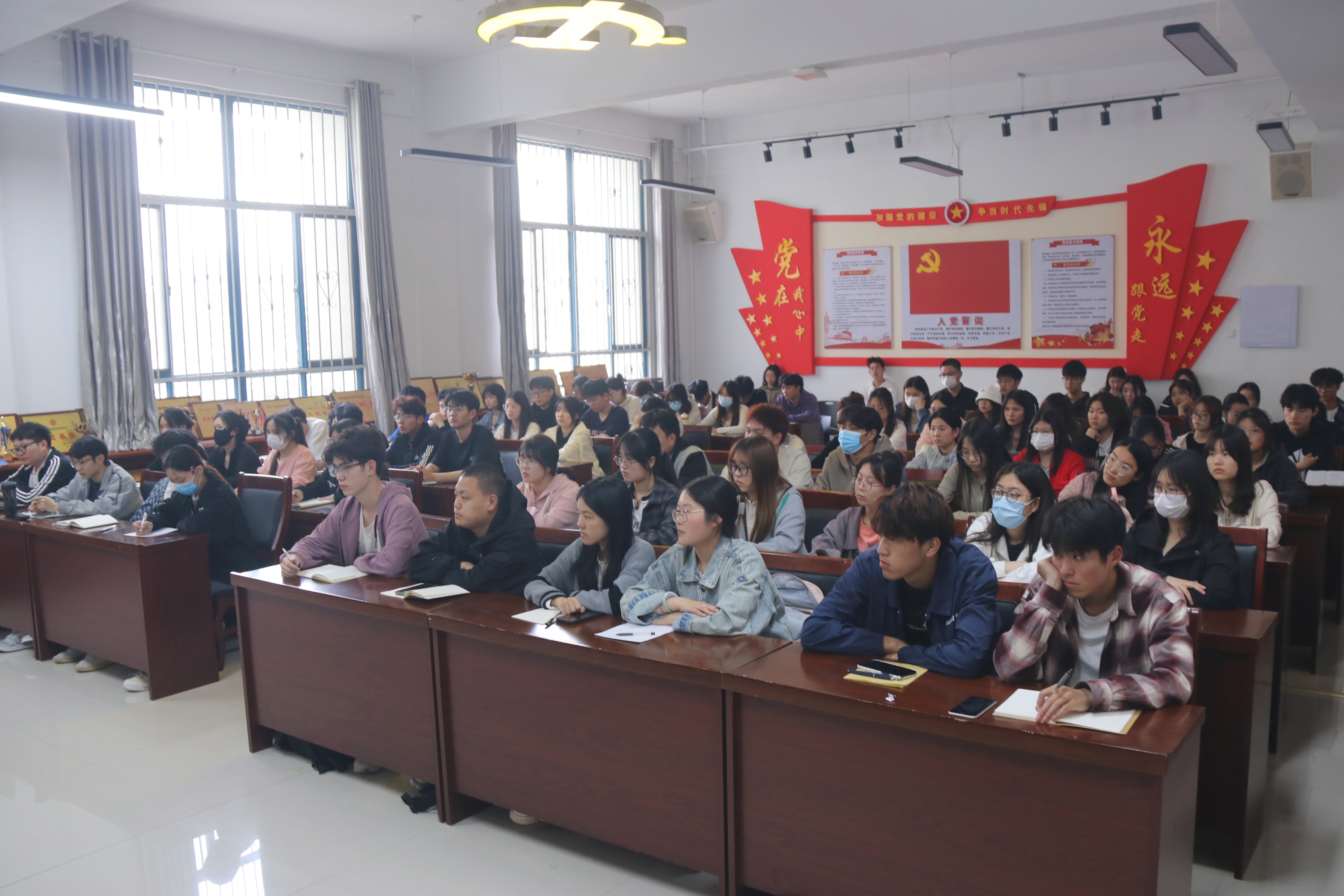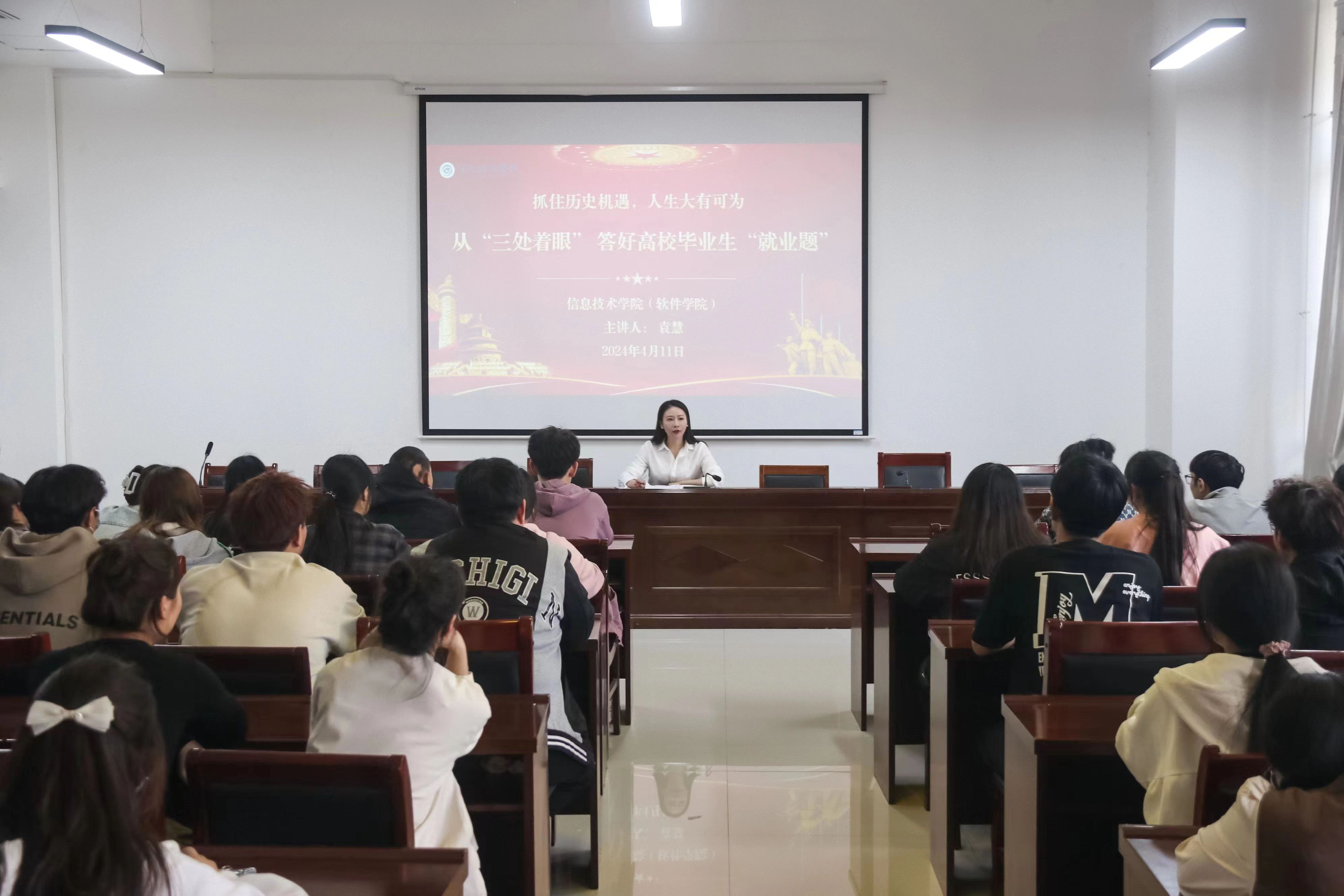 4月11日,太阳成集团tyc234cc分党校举办以“抓住历史机遇,人生大有可为——从‘三处着眼’ 答好高校毕业生‘就业题’”为主题的党课培训,公司党委副书记袁慧主讲,全体入党积极分子参加。