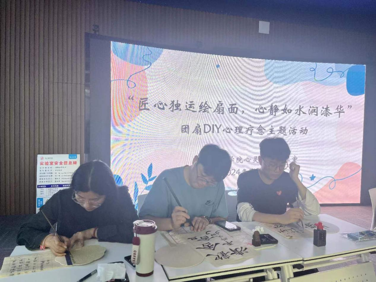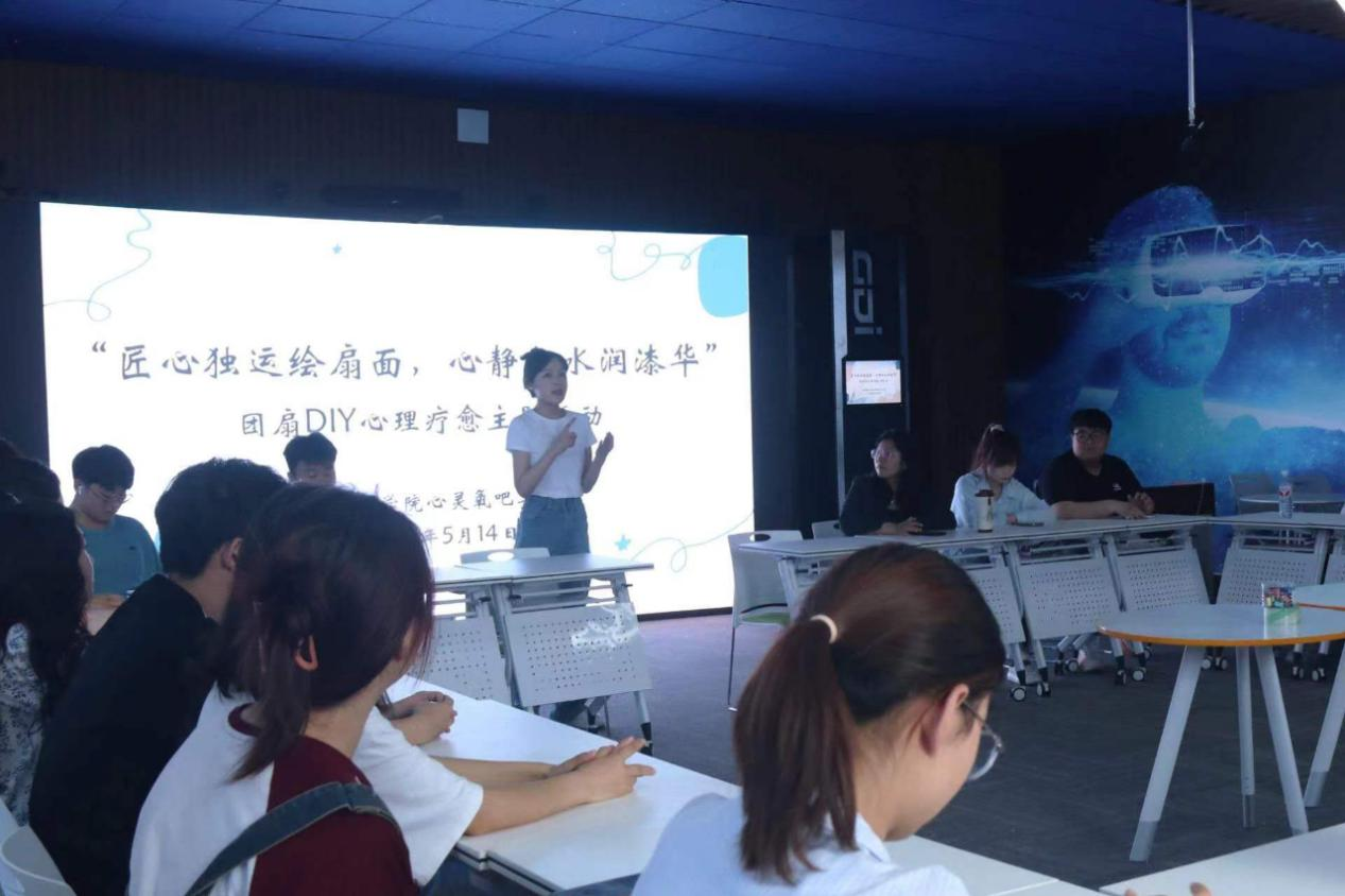 5月14日,太阳成集团tyc234cc心灵氧吧工作室在三商楼322室开展“匠心独运绘扇面,心静如水润漆画”团扇DIY心理疗愈活动,活动由心灵氧吧工作室负责人吴楚主持,共计36名员工报名参与。