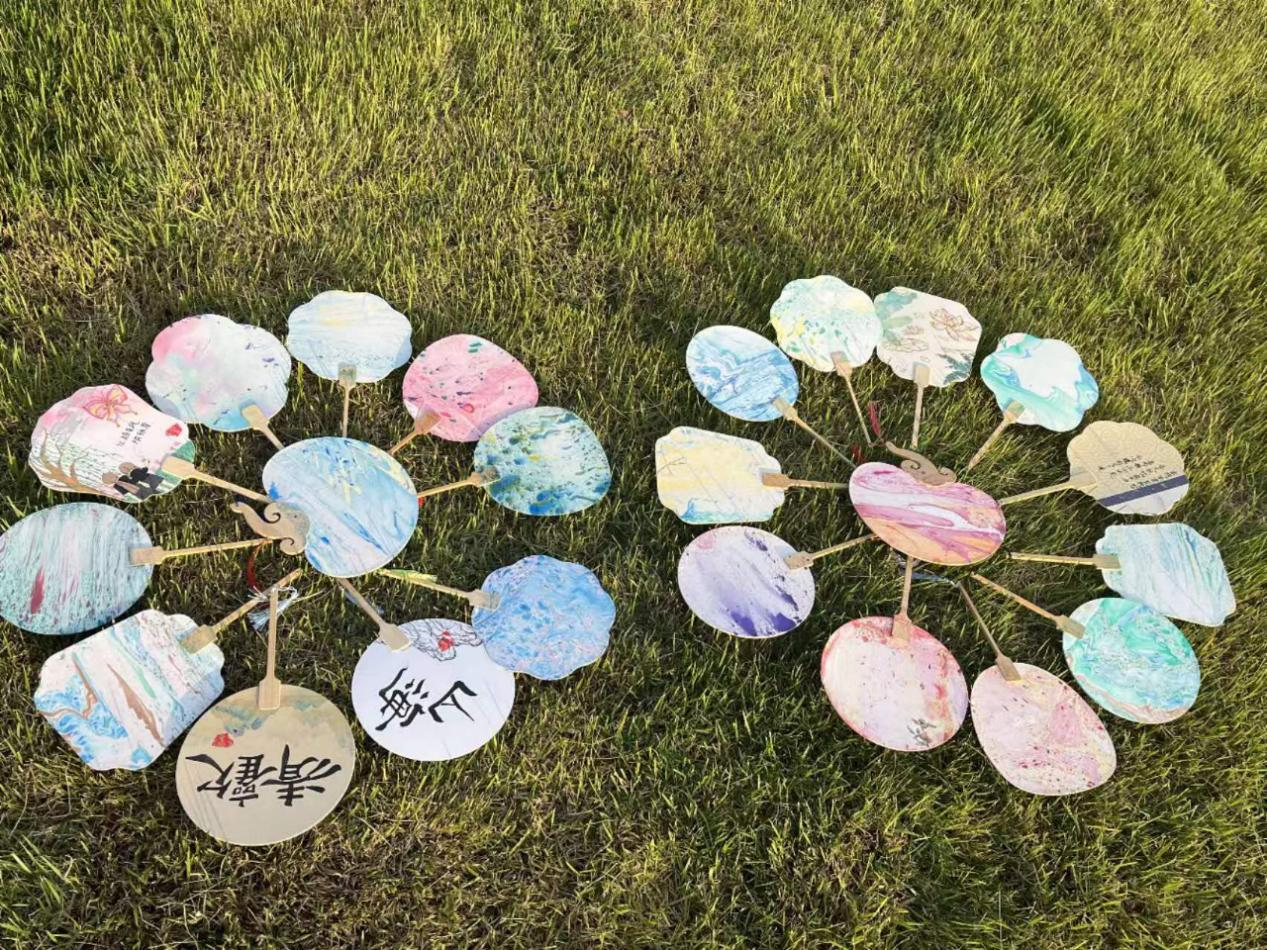 吴楚老师为同学们介绍团扇的文化背景与制作流程,并展示了诸多DIY扇子的创意示例图,激发大家的创作灵感。
