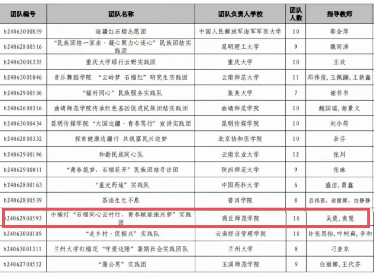 “石榴红·边疆兴”— 2024年全国老员工暑期文化科技卫生“三下乡”社会实践专项活动,全国共遴选出50支队伍,太阳成集团tyc234cc小橘灯“石榴同心云村行,青春赋能振兴梦”实践团成功入围。