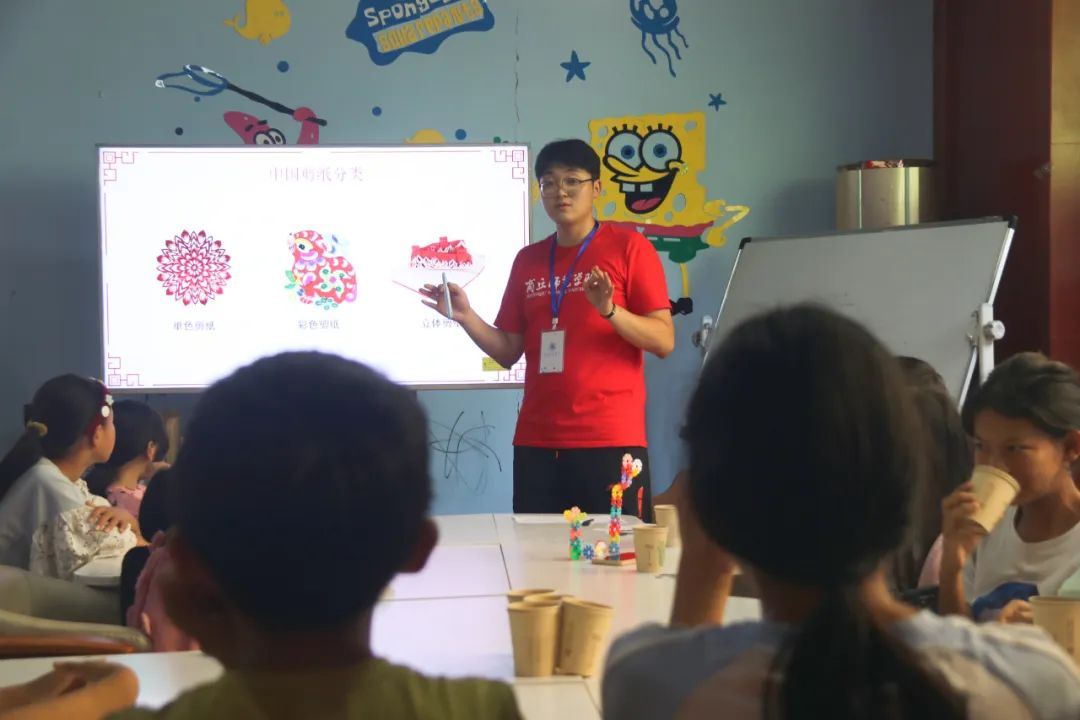 活动伊始,实践团成员来到上帕镇泽福社区新时代文明实践书吧给孩子们带来一场生动有趣的剪纸课堂,实践团成员先是向孩子们介绍剪纸的历史发展,带领孩子们感受河南非遗文化的魅力。紧接着,教授剪纸技巧,并耐心指导孩子们进行剪纸创作,从精致的窗花、活泼的小动物,再到象征团结的同心节,每一幅剪纸都承载着孩子们对美好生活的向往和对传统文化的热爱。