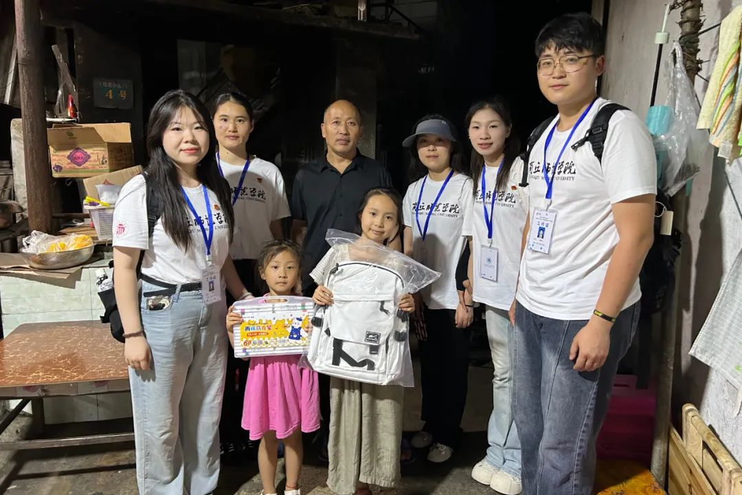 接着,实践团成员认领书吧内3名孩子的微心愿,在当地团委的帮助下,实践团成员走进3名孩子家中,为他们送去“双肩包、彩笔、绘本”等微心愿大礼包,同时了解孩子们的生活、学习以及家庭情况,仔细聆听需求,鼓励他们,不要因为身处困境对生活失去信心,努力和坚持会带来光明璀璨的未来。