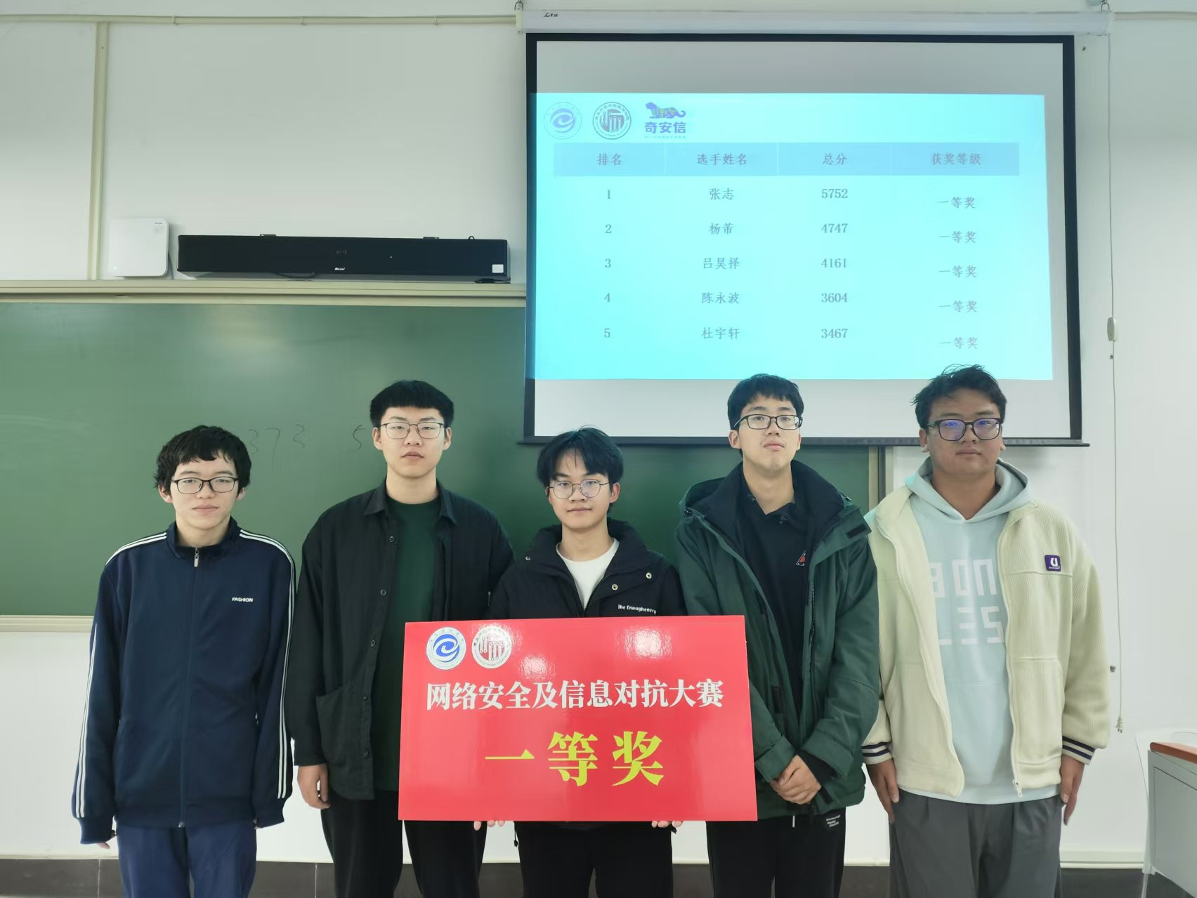 本次比赛共有148名同学报名,采用CTF解题赛制,比赛过程中,参赛选手展开激烈的电子对抗,在对战平台上相互PK夺得旗帜以敲定胜负,最终顺利地完成了整场比赛。最终产生一等奖5名、二等奖10名、三等奖20名,张志、杨芾、吕昊择三位同学荣获前三名。