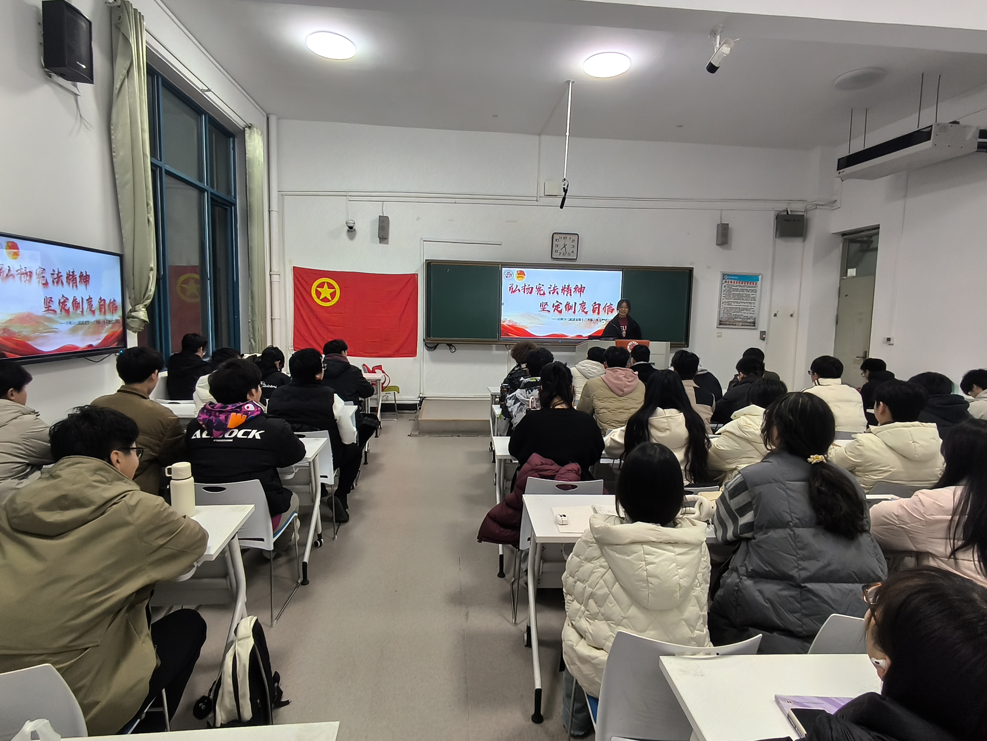 活动中,各团支部通过进行宪法知识宣讲学习、观看普法视频、开展小组交流讨论、以及举行向宪法集体宣誓仪式等形式,让同学们深入学习了解了宪法的内容和地位,明确了自身应当肩负的传承和弘扬宪法精神的重任,进一步增强了法治观念。