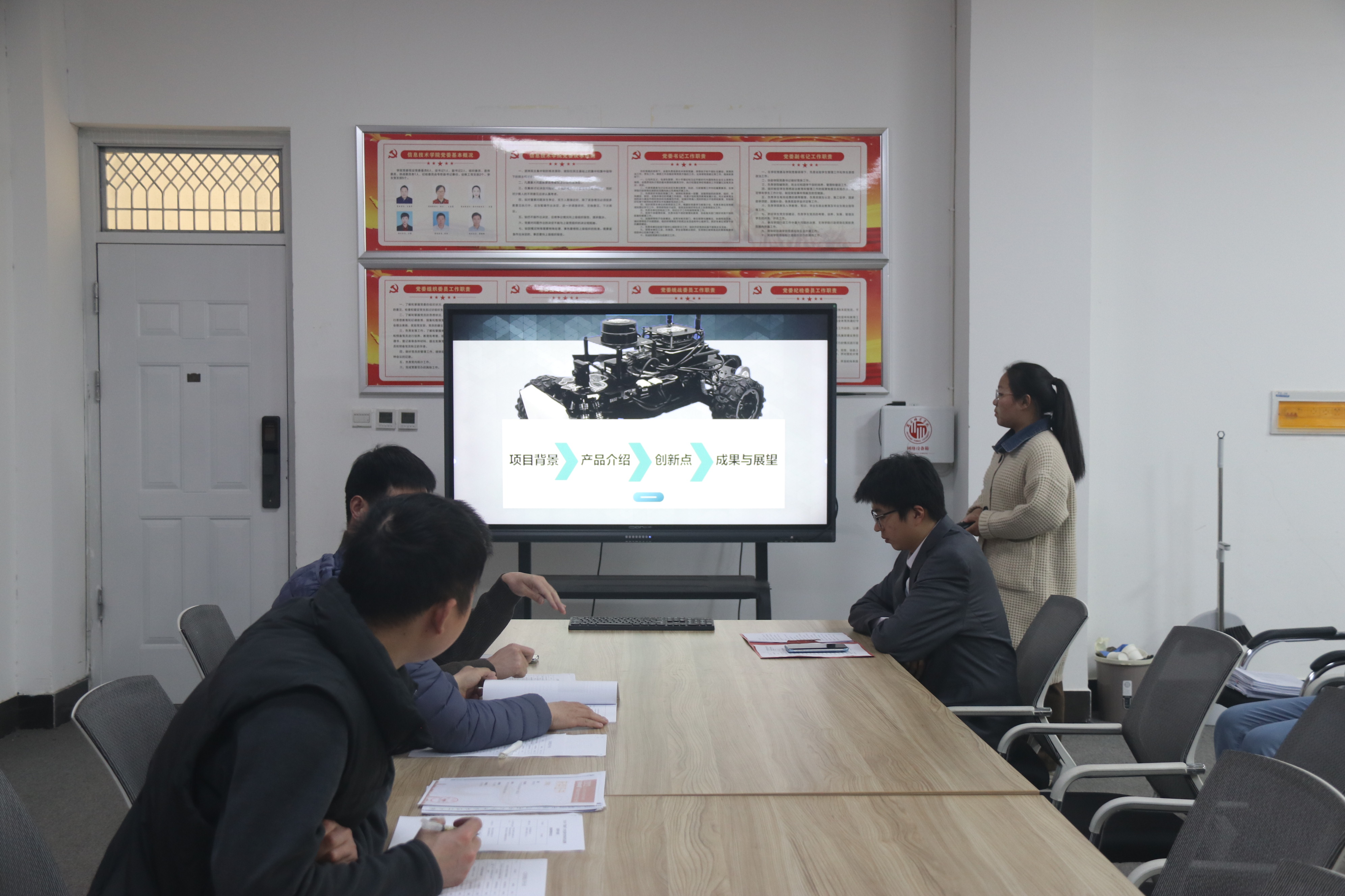 竞赛伊始,刘佳宣读比赛要求,鼓励同学们以饱满的热情对待本次答辩,合理安排时间,讲清楚作品的创新思路和技术核心,通过比赛相互交流学习,进一步锤炼提升科创水平,展现属于信息学子的青春风采。