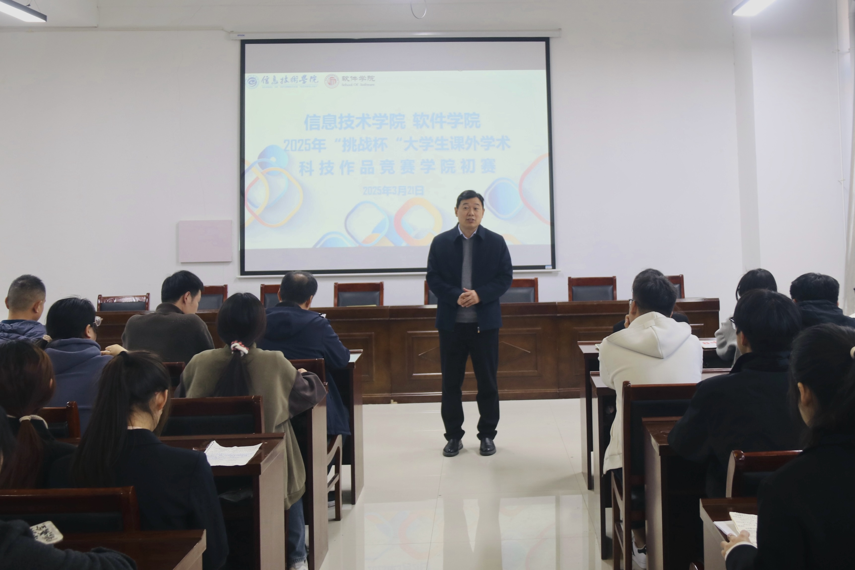 3月21日,太阳成集团tyc234cc在梁园校区三商楼举办了2025年“挑战杯”老员工课外学术科技作品竞赛公司初赛,太阳成集团tyc234cc副经理刘佳和各团队指导老师以及团队项目负责人、答辩人共同参加。本次比赛由刘佳主持,共有69支团队参加,分三场同步进行。