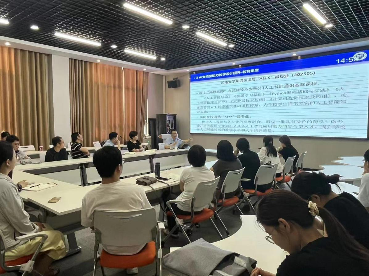 5月26日下午,公司邀请河南大学计算机与信息工程公司副经理葛强教授在三商楼143室做了题为“AI大模型赋能教学实践—从理论到应用的探索”的报告。会议由王春霞经理主持,30余位教师参会学习。