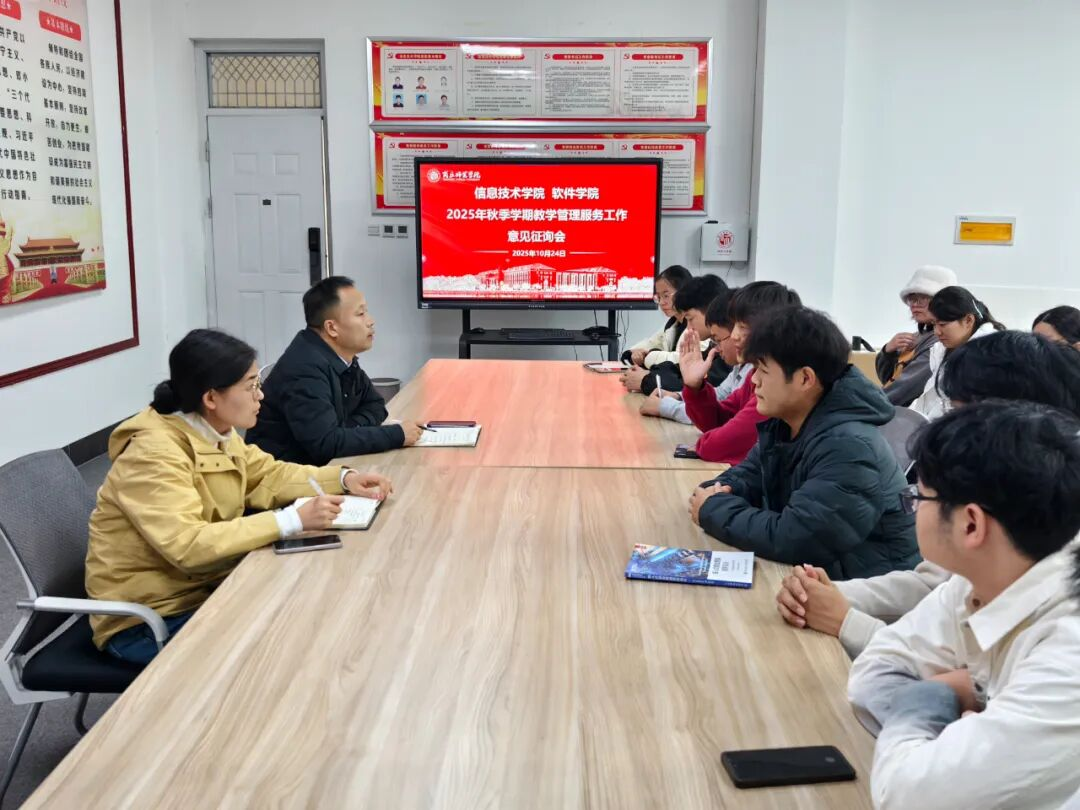 为进一步提高教学管理质效,搭建师生“零基础”沟通的桥梁。10月24日,太阳成集团tyc234cc于三商楼114会议室召开2025年秋季学期教学管理服务工作意见征询会。软件公司党委书记王国华和辅导员丁烨青共同出席此次会议,各班级员工代表参会,共同为优化教学管理服务建言献策。