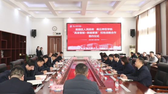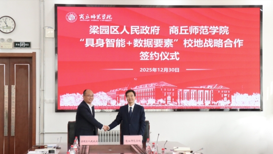 12月30日,公司与梁园区政府在梁园校区归德楼举行“具身智能+数据要素”校地战略合作签约仪式。公司党委书记张尚字,董事长陈向炜,副董事长翟滨,商丘市人大常委会副主任、梁园区委书记张团结,梁园区委副书记、区政府区长魏宏志出席会议。公司有关职能部门,梁园区委、区人民政府,梁园区区直单位负责同志参加签约活动。翟滨主持会议。