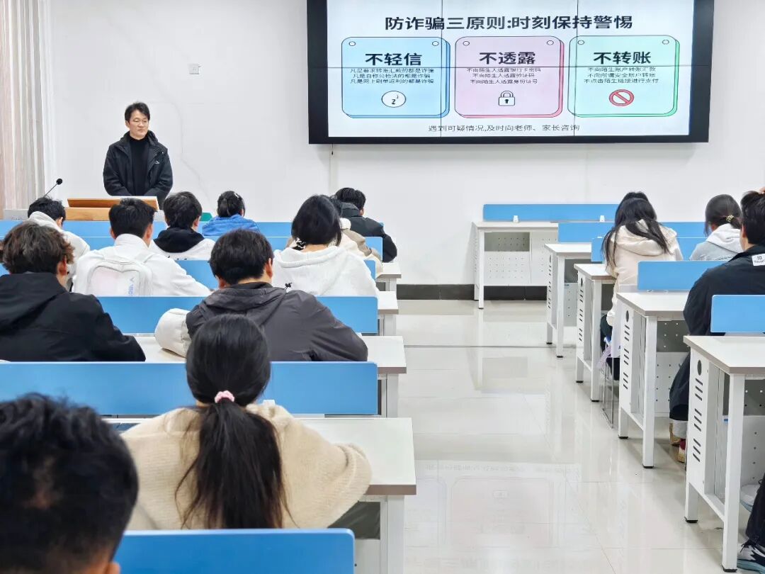 在活动现场,陈老师进行反诈专题讲座,结合刷单返利、冒充客服、游戏账号交易等校园高发骗局,通过真实案例拆解、情景模拟剖析诈骗套路,让同学们直观感受到电信诈骗的隐蔽性与危害性,也深刻记住了“涉钱信息勿轻信,陌生链接勿点击”的核心警示。